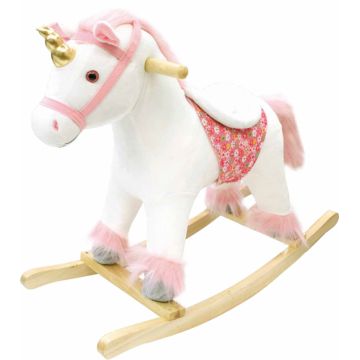 Balansoar Little Mom Unicorn Bpuncy din plus,cu roti, sunete baza solida din lemn, recomandat 3 ani+
